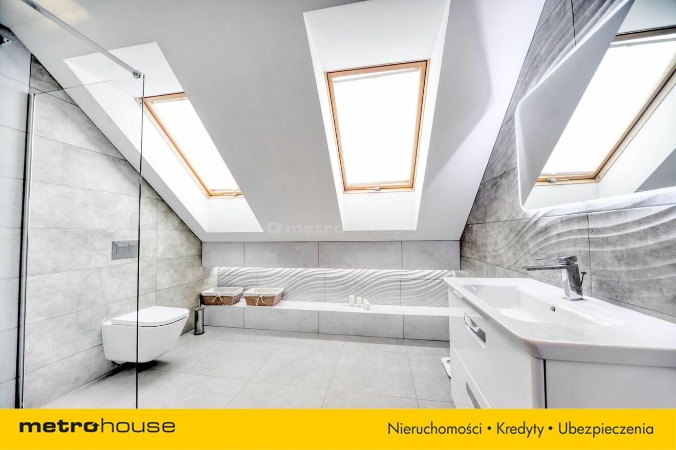 Budynek znajduje się w stanie idealnym, sporadycznie użytkowany wyłącznie przez właściciela. Całość wykończenia została wykonana z użyciem materiałów najwyższej jakości. Na parterze znajduje się duży salon połączony z aneksem jadalnym i kuchennym, łazienka, garderoba i pomieszczenia techniczne wraz z garażem. Na piętrze znajdują się trzy pokoje i dwie łazienki. Jedna z łazienek przynależy do największej z sypialni. Dużym atutem jest duża, ustawna, jasna garderoba pozwalająca na wykorzystanie jej jako dodatkowego pomieszczenia użytkowego.